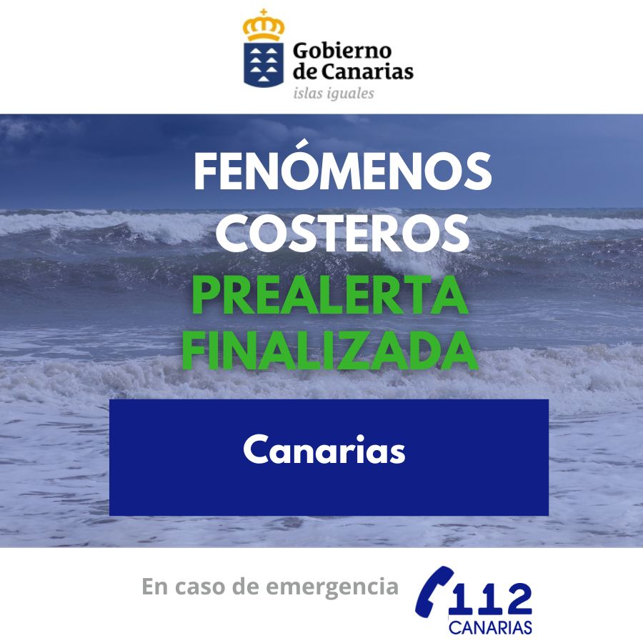 El Gobierno de Canarias, a través de la Dirección General de Emergencias, finaliza la situación de prealerta por fenómenos costeros en Canarias a partir de las 13:00 horas de hoy, domingo 15 de marzo. Esta decisión se toma teniendo en cuenta la información facilitada por la...