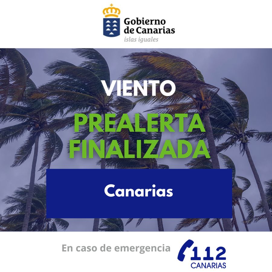 El Gobierno de Canarias, a través de la Dirección General de Emergencias, finaliza la situación de prealerta por viento en Canarias a partir de las 13:00 horas de hoy, domingo 15 de marzo. Esta decisión se toma teniendo en cuenta la información facilitada por la Agencia...